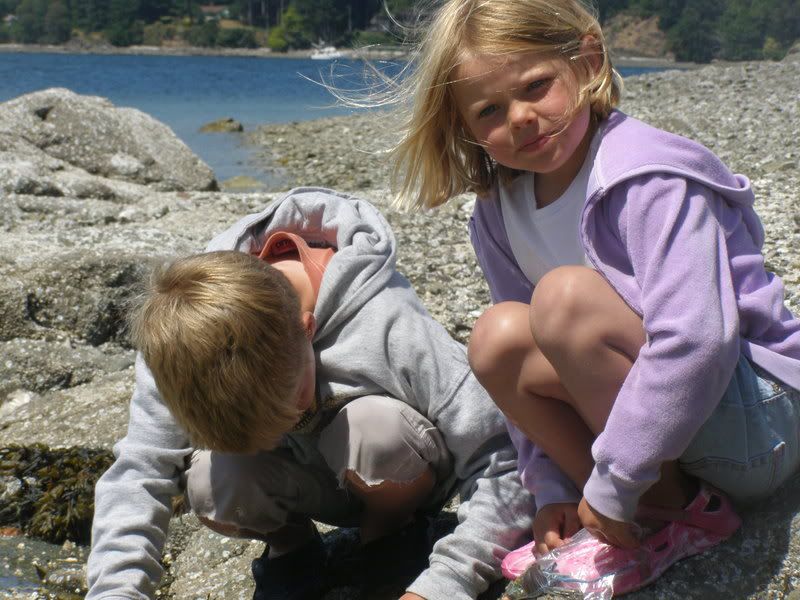 The crossing of the Strait of Georgia wasn’t too bad. We separated from Wind Dancer because they wanted to go to Secret Cove and we wanted to explore Buccaneer Bay on Thormanby Island. It has a nice Sandy beach and the kids really needed some running time. Anchoring in Buccaneer Bay is a little trying, but we finally got Ghost settled in a great spot and headed to shore. The kids had a great time playing in the water and Scott went exploring. A little while later he returned with this:
