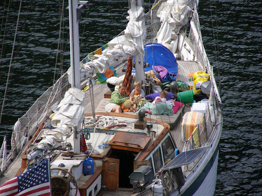 The kids enjoyed their time on the dock and Zak even found a small bat in the water that was barely alive. He fished it out with the net and we put it in a plant to dry out. Hopefuly the little guy survived. Unfortunately we didn't take any pictures. The next morning we decided on another early morning to let the tides help us across the Strait of Georgia into Nanaimo.