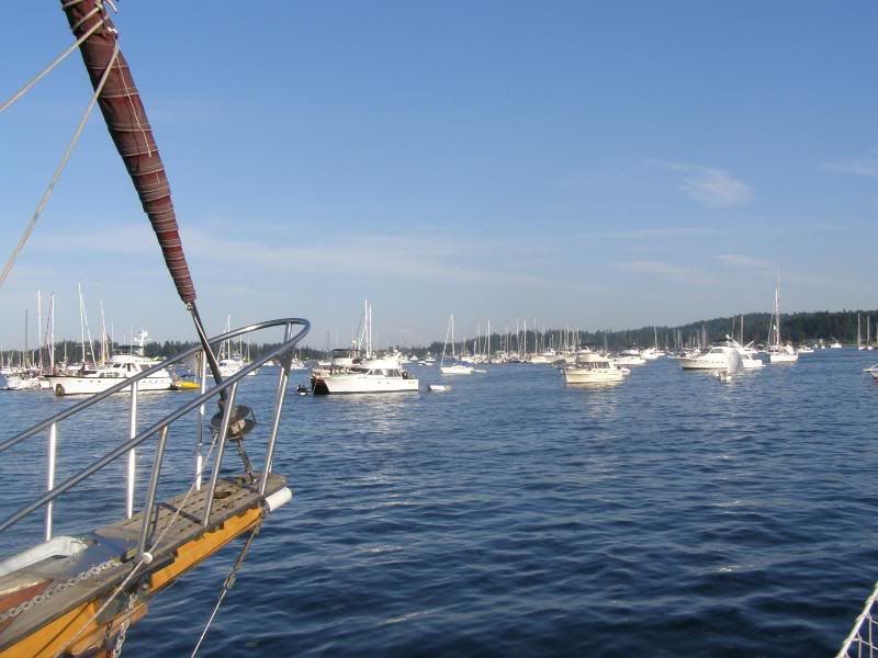 This was an extemely special outing, at least for me. Every year to kick off Seafair here in Seattle, the Seafair Pirates invade Alki Beach. Our cruising group escorted them last year and were planning to do the same thing this year. They wanted as many boats as they could get to fly their flags, dress up, and shoot cannons. Scott was going to be working, so my plan was to go with one of our neighbors. But, and this is a big one, as the day was approaching, I decided that I wanted to make this my first outing without Scott. My other neighbors, Curtis & Cynthia agreed to crew. My co-worker, Jenny came along, too, and we have her to Thank for all the wonderful photos. I was nervous, but ready. We all got dressed up in our pirate garb: