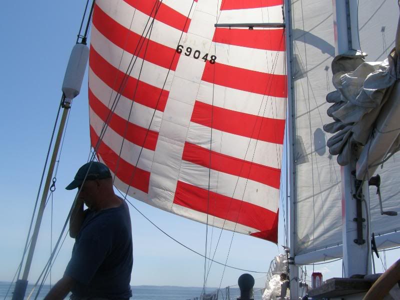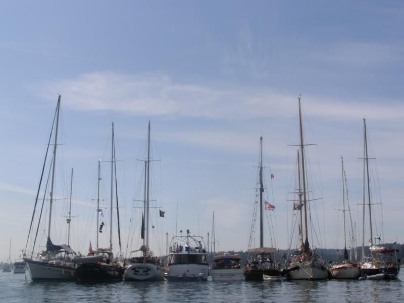 I followed the group, but kept an eye on the depth. Didn't want this to be a bad first outing, so when I saw my depth start to come up, I pulled out of line a bit. Right after that, the leader of our group came over the radio to tell us not to follow him because he had just hit bottom. Luckily he didn't stick, but "no thank you". We kind of just circled around a bit until Lady Washington and the Seafair pirates arrived. Upon arrival the plan was to follow the Lady Washington in, kind of as an escort. As I went out to get behind the Lady Washington, they thought we were someone else and we got broadsided by both her and the pirates: