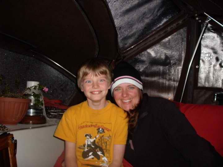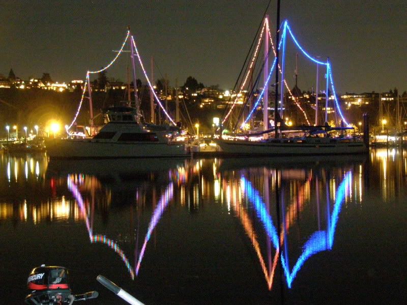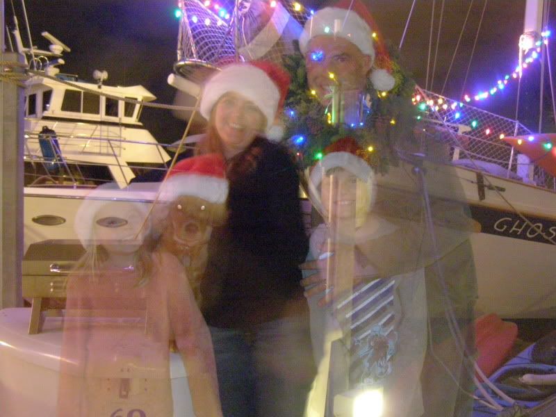 Unfortunately the battery we had for the lights wasn't all that good, so we couldn't keep the lights on the whole time we were out. Afterwards we went aboard our neighbors boat Reflections and had hot buttered rum. Yummm!