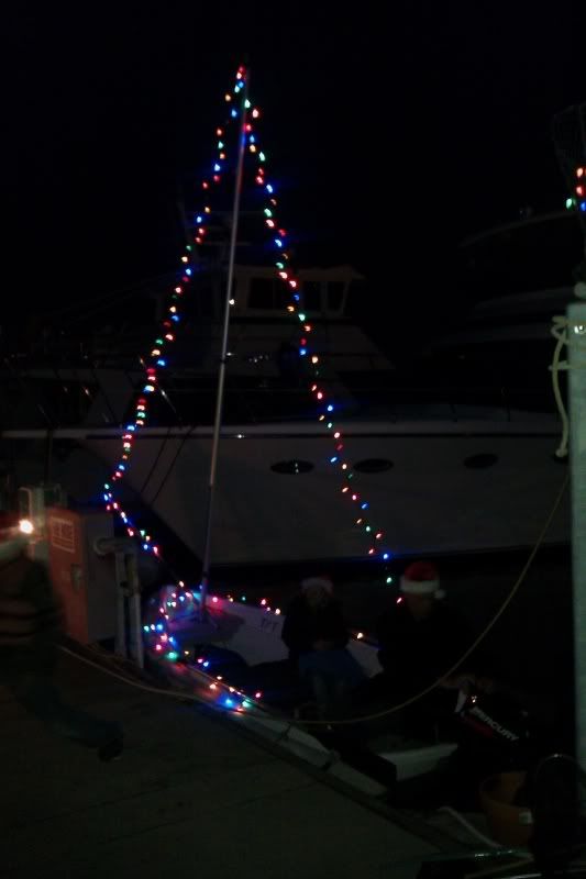 Every year our neighbors try to put together a lighted dinghy Christmas Parade. This year Boo looked great: