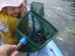 Ellie looking at crab they caught